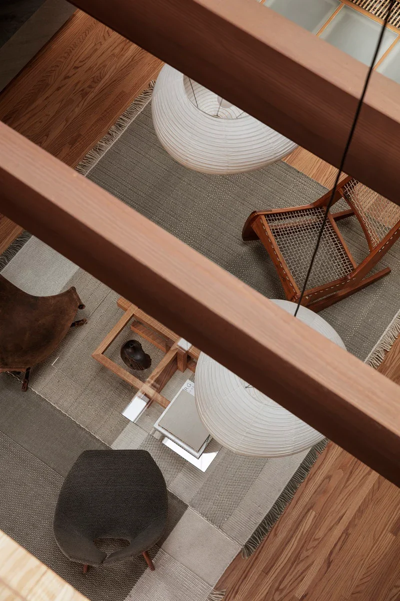 When placing your rug, the balance between rug and exposed floor is essential. Exposing some of the floor allows the rug to feel grounded and gives it space to visually stand out.