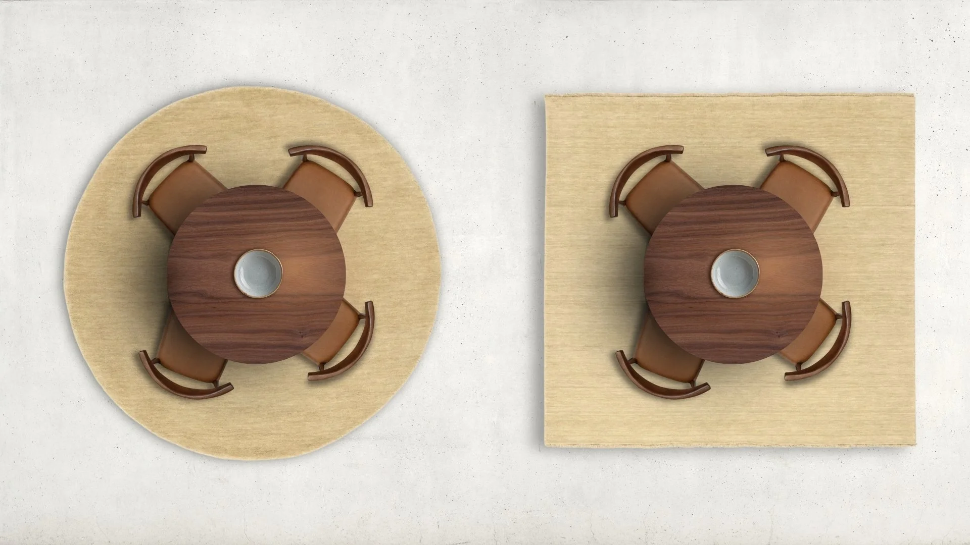 Think about radial balance, round rugs are usually better for round tables.